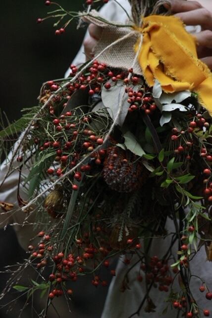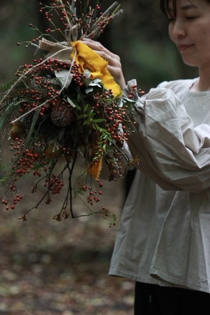 その時に一番綺麗な旬の枝ものやグリーンを使用したスワッグ(壁飾り)です。
