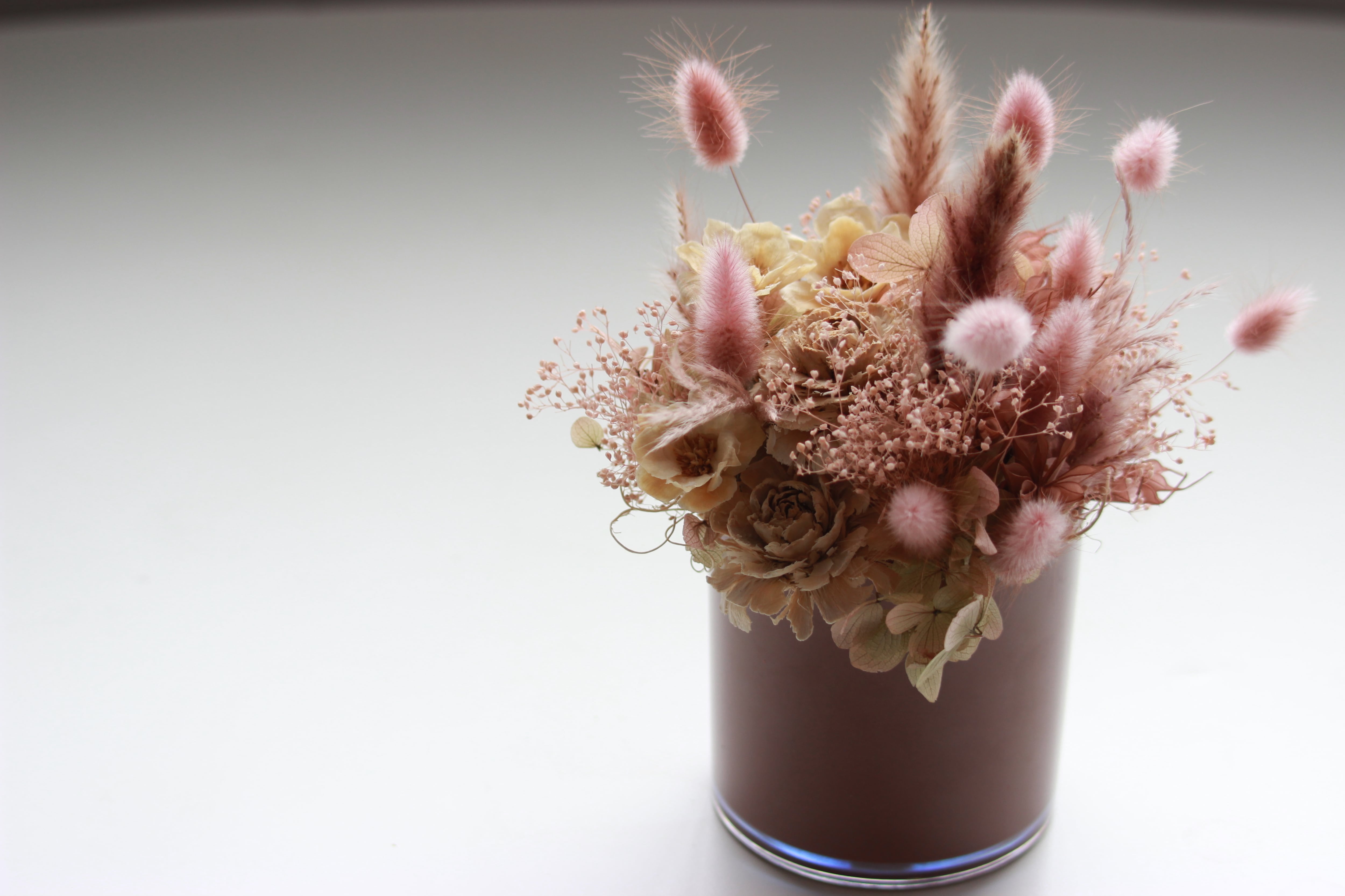 ドライとプリザーブドフラワーのアレンジメントM”アンティークピンク”