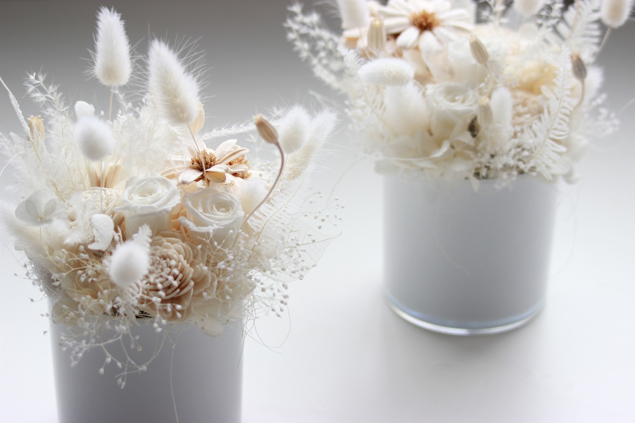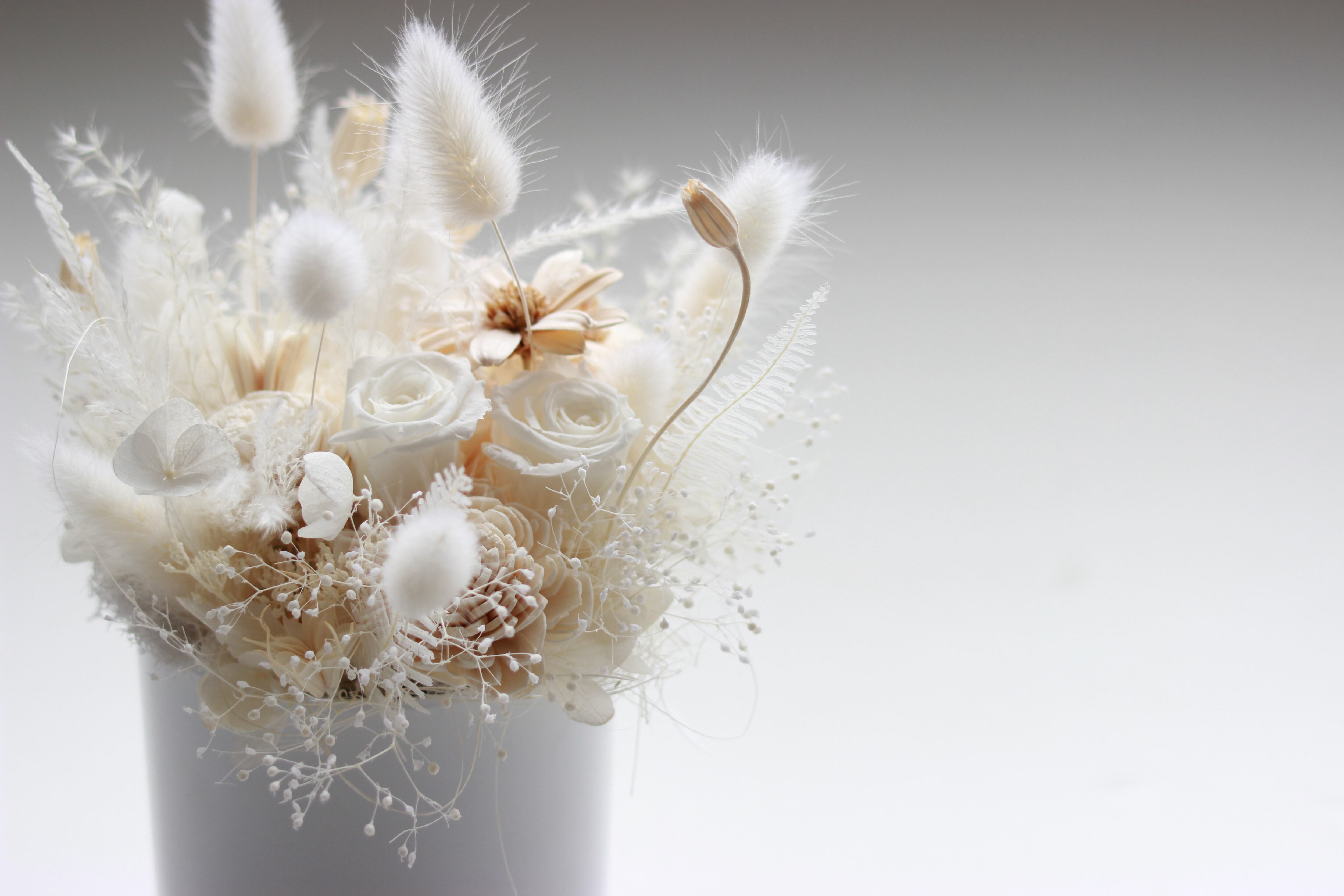 ドライとプリザーブドフラワーのアレンジメントM”ナチュラルホワイト”